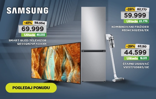 Samsung Smart televizor QE55Q7FAAUXXH-40%Special Price 59.999,00 RSD 100.221,00 RSD Ušteda 40.222,00 RSD -