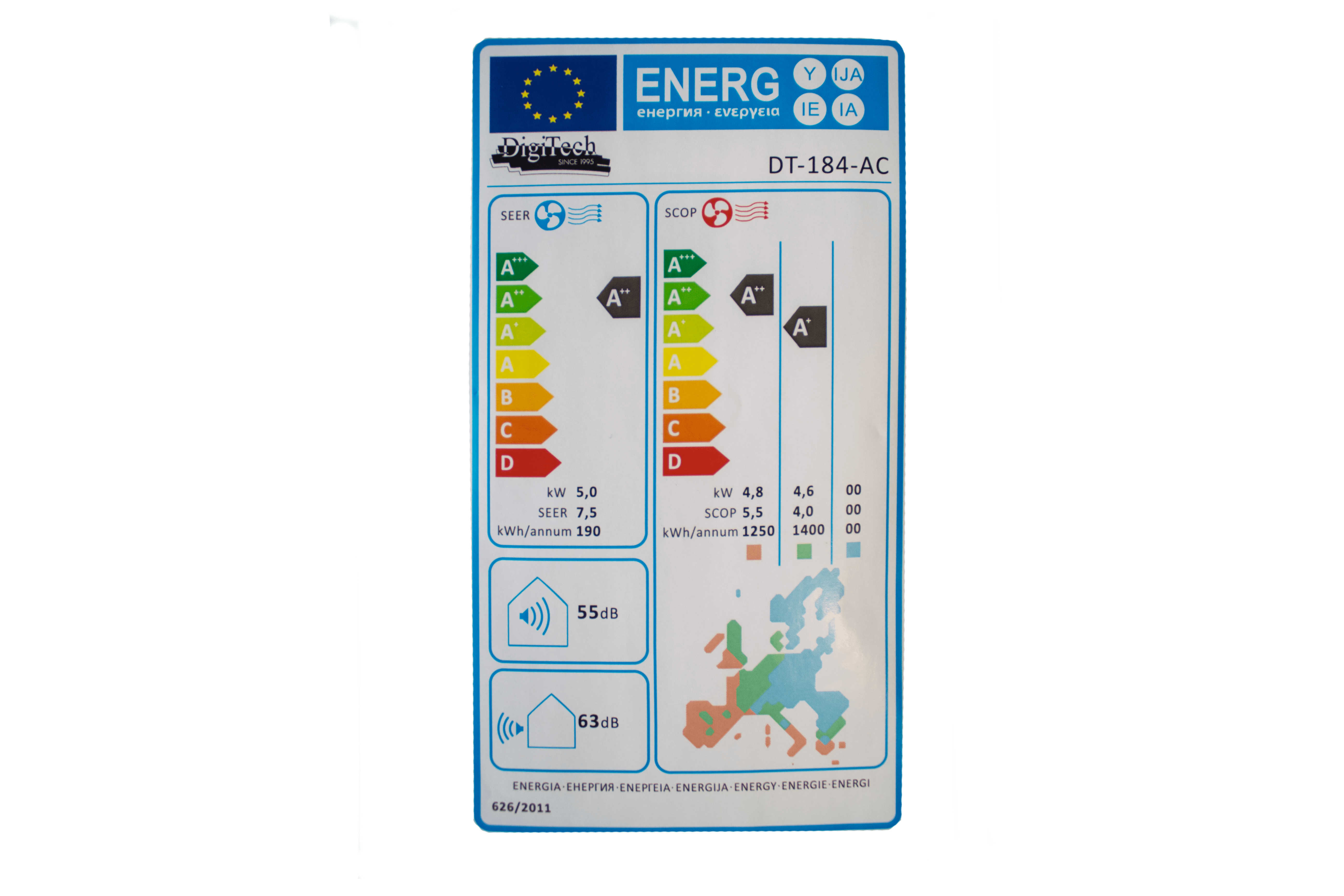 - Snaga grejanja 1800 W, hlađenja 1700 W, i kapacitet odvlaživanja 1.8 l/h