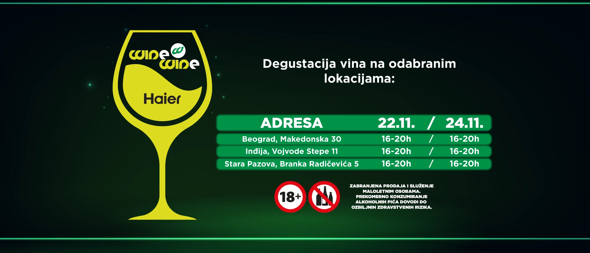 Tokom tri dana, u odabranim Win Win radnjama čeka vas besplatna degustacija pažljivo odabranih vina, kao i posebne pogodnosti koje ne želite da propustite.